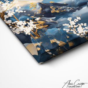 Our painting depicts mountains with a subtle artistic touch, playing on natural colors and shades. It exudes an authentic and contemplative atmosphere. Ideal for an elegant, nature-inspired decor. This painting enriches the space with depth and poetry.