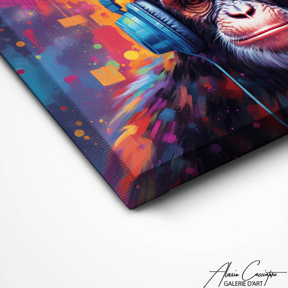 The artist wanted to highlight in this painting a monkey wearing a helmet, a fusion of nature and fantasy that challenges and fascinates, offering a contemporary work of art that stimulates conversation and imagination.