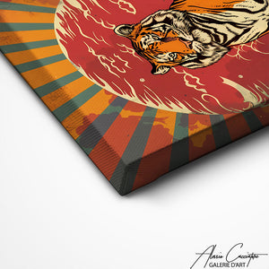 This Japanese tiger painting is inspired by traditional Japanese aesthetics, with a majestic tiger symbolizing strength and courage. The meticulous details and refined patterns bring a touch of Asian culture to your interior, perfect for a zen or exotic decoration.