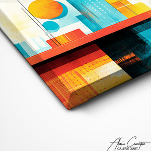 Notre tableau abstrait moderne réinvente l'atmosphère de votre espace principal. Les formes abstraites et la composition réfléchie invitent à l'interprétation personnelle tout en structurant l'espace. Cette impression sur toile devient le cœur expressif de votre salon, établissant le ton esthétique de la pièce tout en offrant une profondeur visuelle qui évolue avec chaque regard.