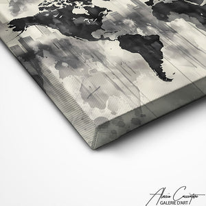 Ce tableau carte du monde, avec des continents subtilement tracés et son arrière plan urbain élégant, s'adapte à tout type d'espace. Parfait pour un salon ou un bureau, il allie esthétique et inspiration globale.