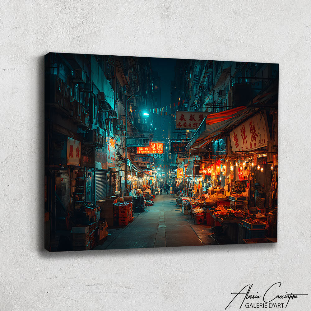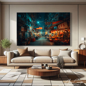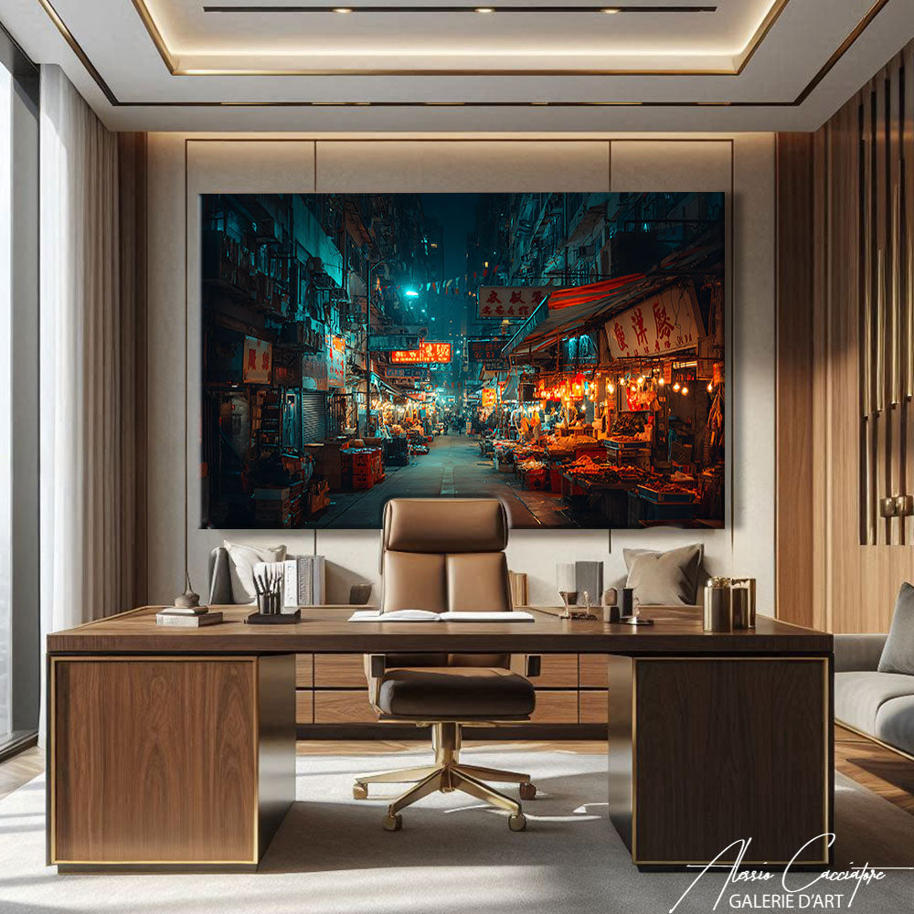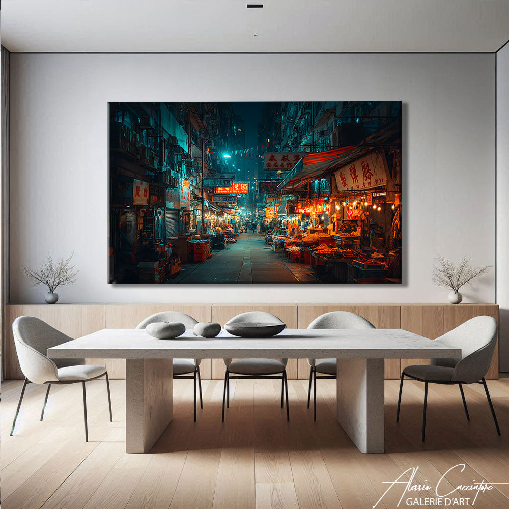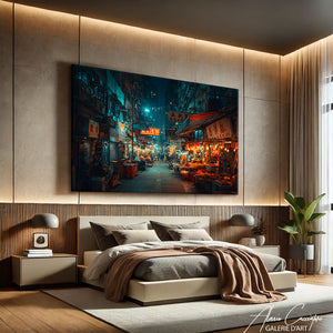 Notre tableau chambre adulte met en avant un marché de nuit asiatique en style néon moderne. Coloré et dynamique, il apporte une ambiance urbaine et contemporaine. Une pièce qui attire le regard et anime vos murs.