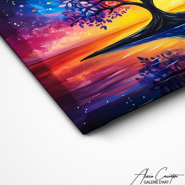 Notre tableau sur toile coloré de l'arbre de vie allie symbolisme profond et expression artistique. Parfait pour un coin détente ou un espace de travail créatif, il inspire sérénité et réflexion. Les traits délicats et les teintes soigneusement sélectionnées créent une atmosphère à la fois apaisante et stimulante. Un élément décoratif significatif qui apporte profondeur philosophique et beauté visuelle à votre environnement quotidien.