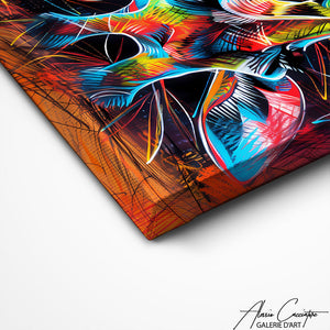 Nos toiles sont imprimées grâce à une encre spéciale resistante aux UV. Cette encre protège les couleurs au fil des années pour conserver le contraste de la peinture.