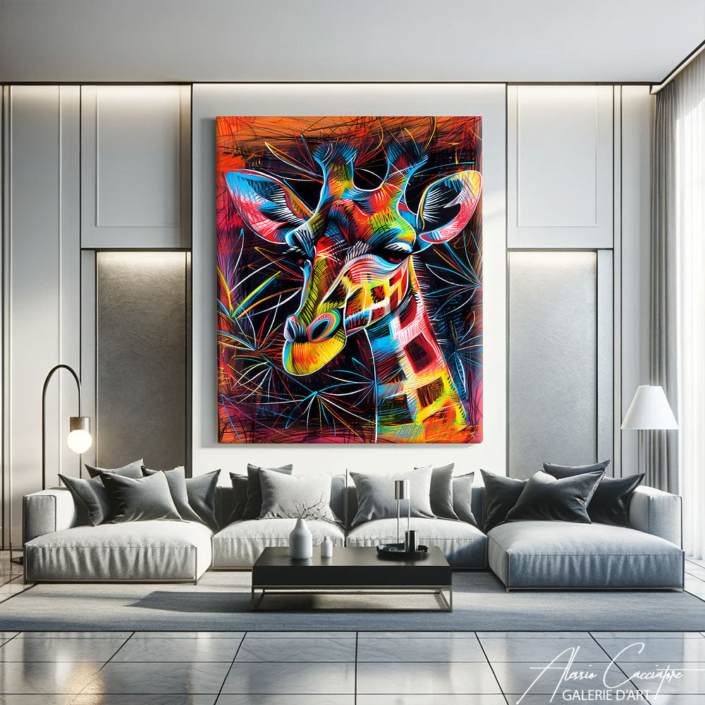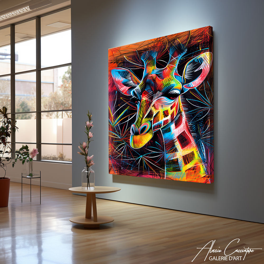 Apportez une touche artistique et ludique à votre intérieur avec ce tableau de girafe dessin. Les lignes délicates et les couleurs douces créent une œuvre charmante et captivante, parfaite pour une décoration ludique
