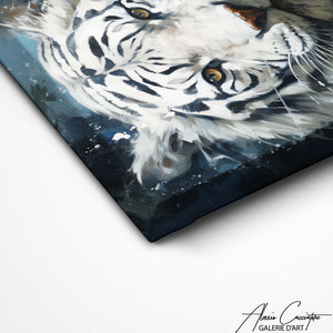 Le tableau tigre blanc est une œuvre d'art sublime, capturant la rareté et la grâce envoûtante de cet animal magnifique. Les nuances délicates et la représentation détaillée du pelage reflètent la pureté et la noblesse, faisant de ce tableau un ajout élégant et raffiné à tout espace de vie.