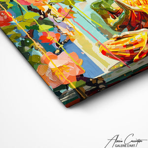 Nos toiles sont imprimées grâce à une encre spéciale resistante aux UV. Cette encre protège les couleurs au fil des années pour conserver le contraste de la peinture.
