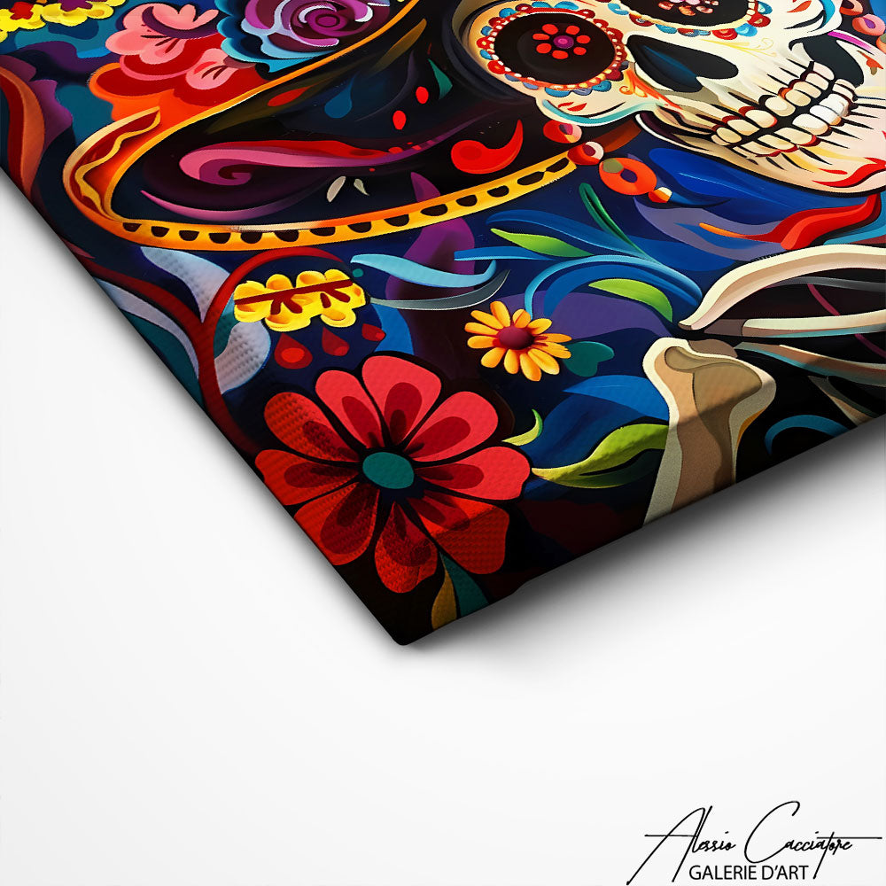 Notre tableau tête de mort explore un univers sombre et mystérieux, tout en étant stylisée avec des touches artistiques modernes. Parfait pour les amateurs d’art audacieux, il apporte une touche intrigante et décalée à votre décoration.