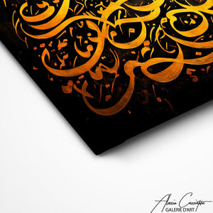 Notre tableau calligraphie arabe met en valeur des lettres fluides et des compositions élégantes, réalisées avec des couleurs riches. Une œuvre parfaite pour les amateurs de décoration sophistiquée et culturelle.