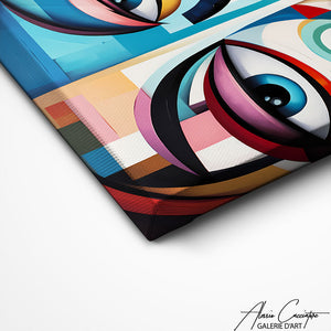 Ce tableau explore la féminité à travers le style cubiste. La femme, représentée en formes et couleurs dynamiques, devient une célébration de la force et de la beauté, transcendant les conventions artistiques.