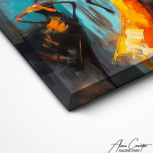 Nos toiles sont imprimées grâce à une encre spéciale resistante aux UV. Cette encre protège les couleurs au fil des années pour conserver le contraste de la peinture.