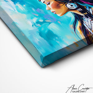 Notre tableau représente un visage indien orné de peintures de guerre, symbole de courage, de force et de connexion avec les esprits de la nature. Chaque nuances et chaque couleur de ce tableau expriment une signification profonde, rendant hommage aux traditions et aux valeurs des peuples amérindiens. Parfait pour un salon ou un bureau, il impose une présence forte et inspirante, créant une ambiance à la fois historique et artistique.