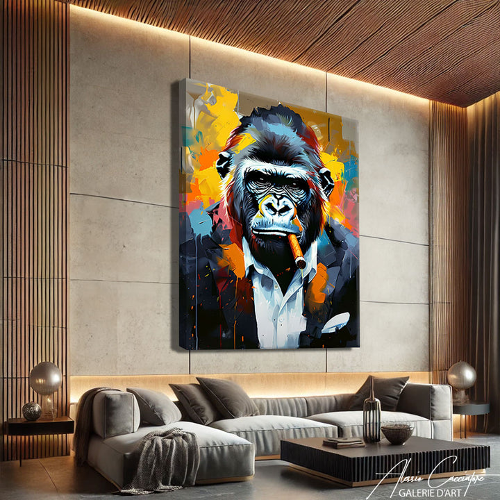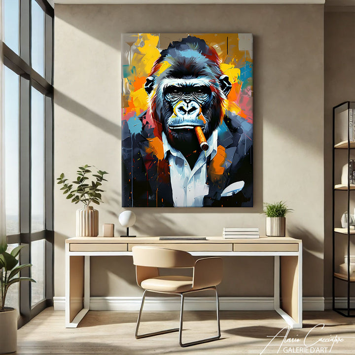 Notre tableau gorille cigare illustre la puissance et l’attitude audacieuse de cet animal emblématique. Avec des détails saisissants et une touche d'humour décalée, il allie force et élégance dans une œuvre unique. Parfait pour un salon ou un bureau, elle apporte une énergie contemporaine et originale à votre décoration.