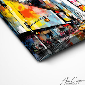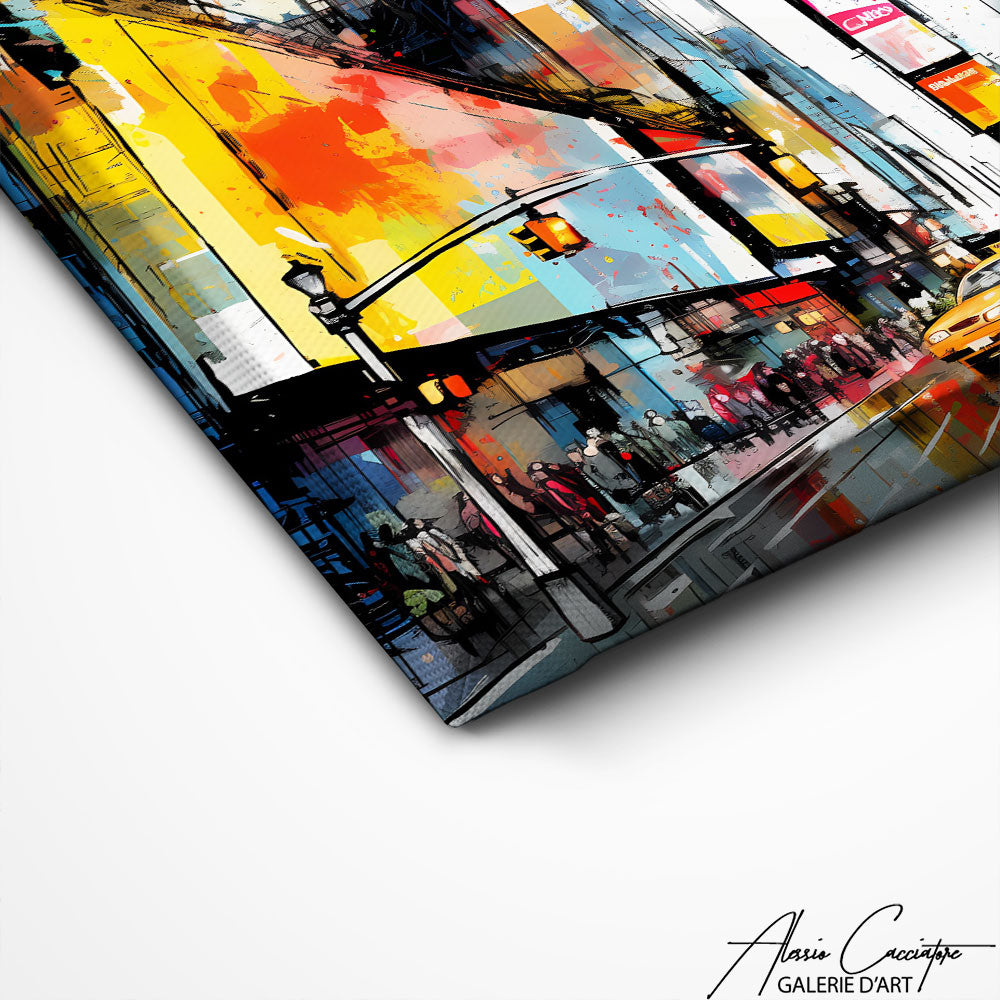 Ce tableau moderne de New York mélange harmonieusement style contemporain et charme urbain, offrant une vision artistique unique de la ville. Parfaite pour ceux qui désirent une œuvre d'art moderne qui célèbre l'énergie et la diversité de New York.