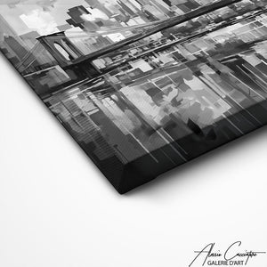 Cette œuvre saisissante capture New York dans une élégante palette de noir et blanc. Les contrastes audacieux et les nuances subtiles reflètent le dynamisme et la complexité de la ville, offrant une pièce de décoration intemporelle qui fascine et inspire.