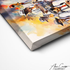 Notre tableau d'orchestre de jazz est une invitation à ressentir la passion et l'énergie de la musique, parfaite pour les amateurs de jazz souhaitant emporter un peu de cette magie dans leur intérieur