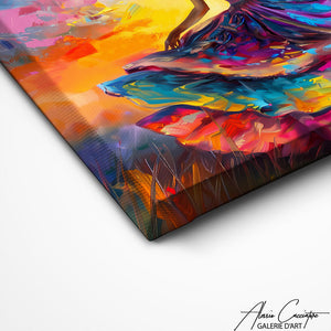 Nos toiles sont imprimées grâce à une encre spéciale resistante aux UV. Cette encre protège les couleurs au fil des années pour conserver le contraste de la peinture.