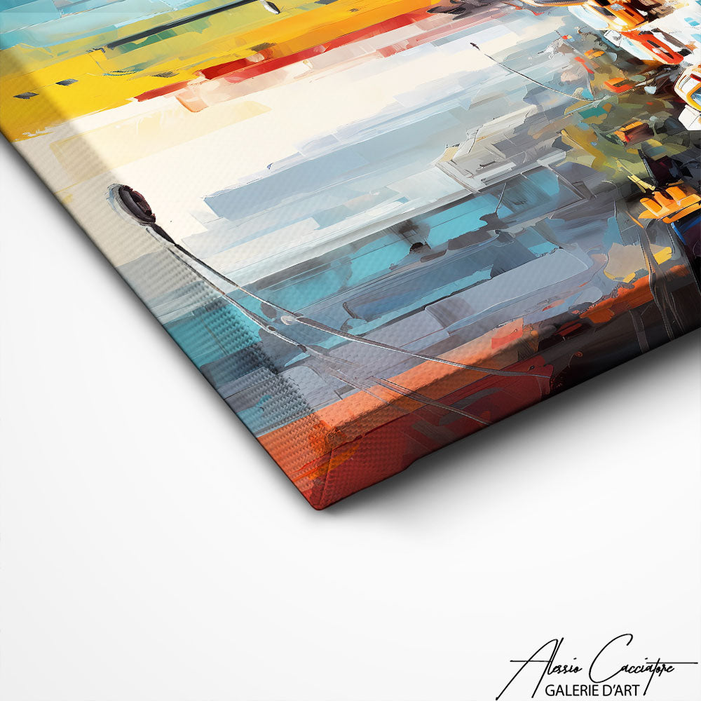 Plongez au cœur de l'agitation new-yorkaise avec ce tableau, où les emblématiques taxis jaunes se frayent un chemin à travers la toile, offrant une dynamique urbaine pleine de vie à votre décor. Un must-have pour les amoureux de la ville et de son énergie inépuisable.