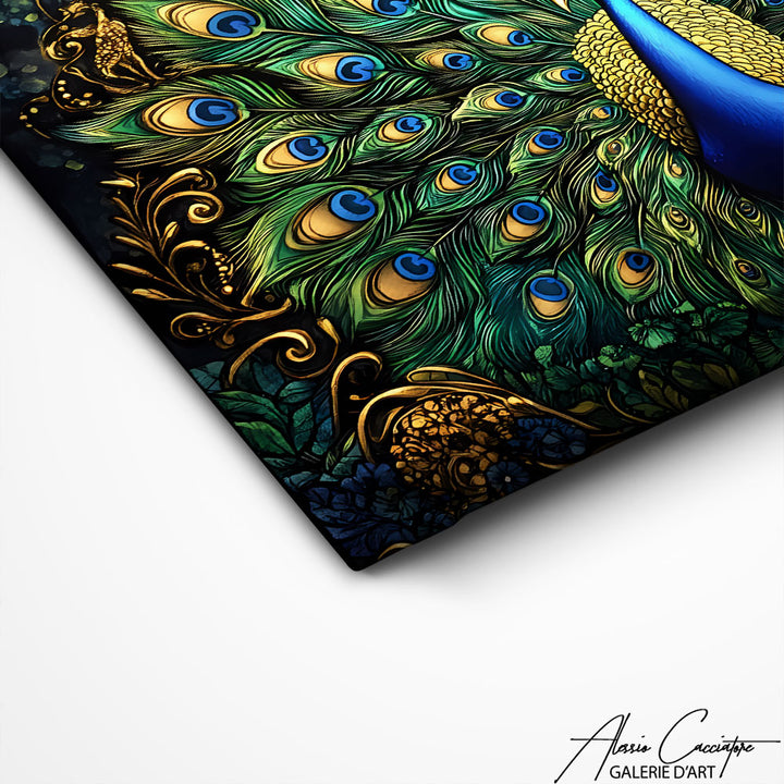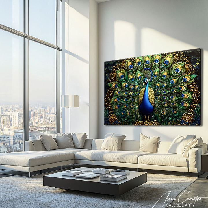Notre tableau paon apporte profondeur et sophistication à votre décoration. Idéal pour un salon contemporain, il crée une atmosphère luxueuse et apaisante. Cette couleur verte emblématique, entre émeraude et turquoise, évoque la beauté naturelle et l'élégance intemporelle du plumage de cet oiseau majestueux. Notre tableau devient un décoratif qui enrichit votre palette chromatique intérieure tout en apportant une touche de mystique naturelle.