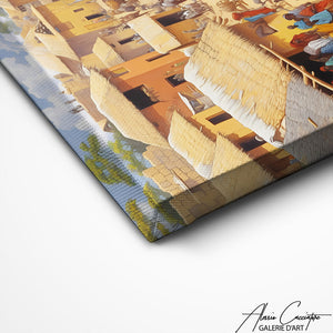 Chaque détail, des toits de chaume aux ruelles sinueuses, est travaillé avec une attention et une affection minutieuses, capturant la vie africaine pour créer ce tableau d'un village africain