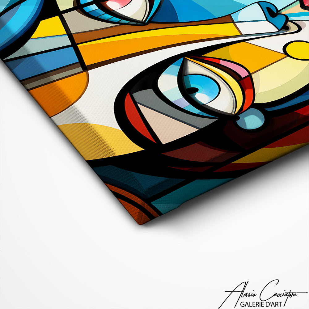 Dans notre fascinant tableau, un visage est déconstruit en formes cubistes, offrant une perspective unique sur l'expression humaine. L'artiste explore les émotions à travers un kaléidoscope de formes et de couleurs, créant une œuvre profondément expressive.
