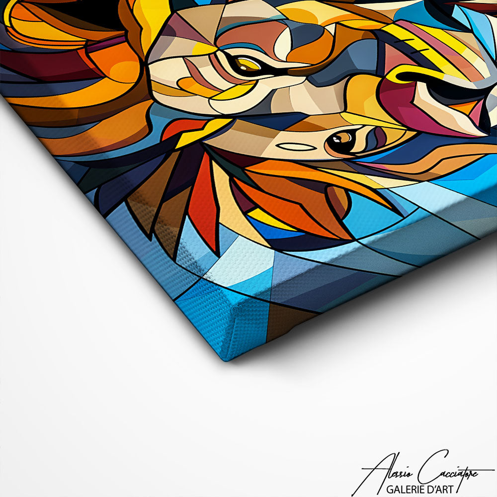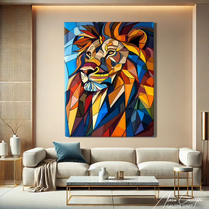 Notre tableau cubiste lion revisite la majesté du roi de la savane à travers des formes géométriques audacieuses et des couleurs dynamiques. Chaque facette du tableau joue avec la lumière et la perspective pour créer une composition puissante et moderne. Idéal pour un intérieur contemporain, ce tableau impose sa présence avec force et caractère, transformant votre mur en une véritable œuvre d'art. Parfait pour ceux qui recherchent une décoration unique et expressive.