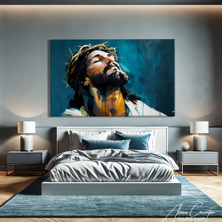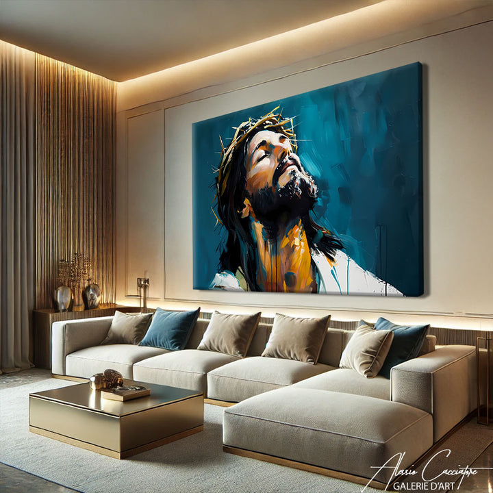 Notre tableau de Jésus met en valeur la douceur et la compassion de son visage. Parfait pour un espace de prière ou une décoration sobre et spirituelle, il invite à la méditation et à la réflexion.