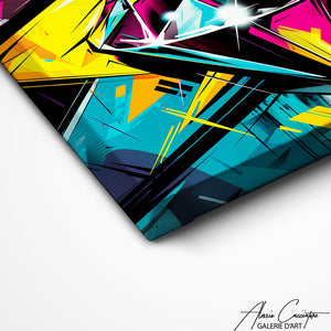 Notre tableau street art représente un diamant éclatant dans un style urbain et graphique, symbole de force, de luxe et de rareté. Les coulures de peinture, les éclats de couleur et l’effet graffiti donnent au diamant une allure brute et moderne. Parfait pour une décoration audacieuse et contemporaine. Ce tableau allie élégance et esprit rebelle avec une touche artistique percutante.