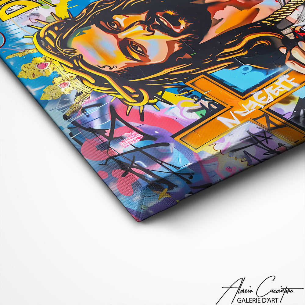 Ce tableau représentant Jésus dans un style street art, fusionne la spiritualité avec l'art urbain. Parfait pour ceux qui souhaitent un décor imposant et contemporain, empreint de signification et de modernité.
