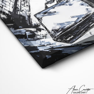Notre tableau abstrait noir et blanc impose ce businessman déterminé dans la jungle urbaine des gratte-ciels. Ambition et modernité citadine se conjuguent dans cette œuvre corporate qui dynamise votre bureau ou salon avec son élégance masculine intemporelle.