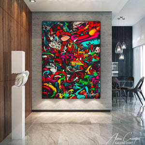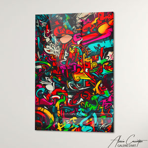 Notre tableau présente une explosion de formes graffiti, mêlant couleurs vives, dynamiques et esprit libre. Chaque élément semble jaillir du mur avec force et spontanéité. Parfait pour une déco moderne, audacieuse ou industrielle. Ce tableau insuffle une dose de créativité et de mouvement à votre intérieur.