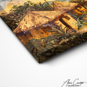 Notre tableau paysage africain capture la beauté naturelle des savanes et de ce village, avec des teintes chaudes et lumineuses. Il transporte votre intérieur dans une ambiance dépaysante et apaisante.