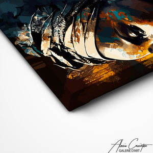 Nos toiles sont imprimées grâce à une encre spéciale resistante aux UV. Cette encre protège les couleurs au fil des années pour conserver le contraste de la peinture.
