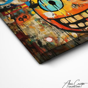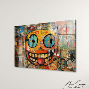 Notre tableau street art met en scène un smiley espiègle qui tire la langue, dans un style graffiti coloré et décalé. L’expression joueuse et les couleurs vives insufflent une dose d’humour et de modernité à votre déco. Parfait pour un intérieur urbain, jeune ou arty. Ce tableau apporte fun, caractère et esprit rebelle à votre mur.
