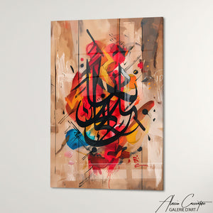 Ce tableau de calligraphie islamique sublime l'écriture arabe avec des lignes élégantes et harmonieuses, créant une œuvre spirituelle et esthétique. Idéal pour décorer un espace de méditation ou de prière, il apporte paix et inspiration.