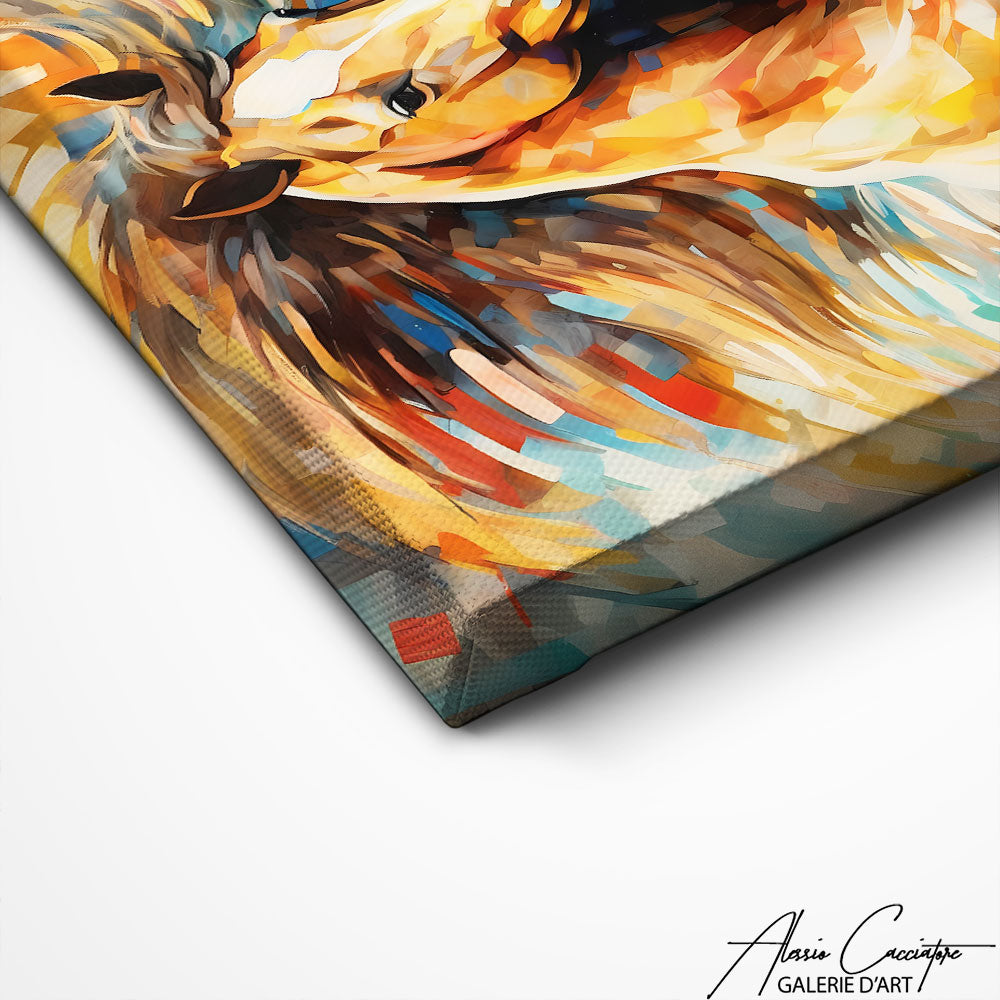 Notre tableau cheval décoration capte toute l’élégance de l’animal en pleine course, dans un style contemporain riche en couleurs. Une pièce forte pour sublimer un salon, un bureau ou un intérieur inspiré par la nature et l’énergie animale.