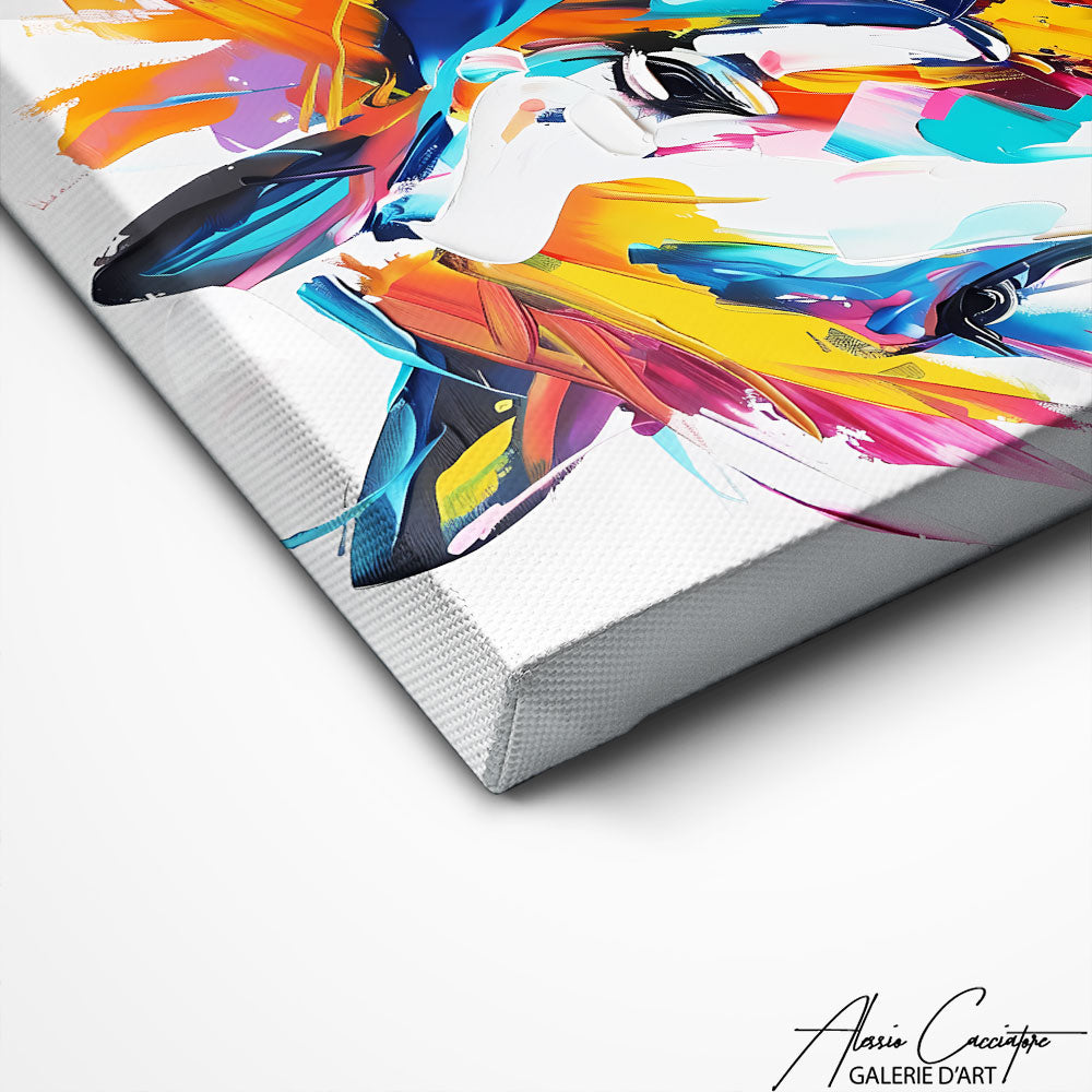 Notre tableau cheval multicolore donne vie à un cheval majestueux, symbolisant la liberté et la puissance dans un style moderne et audacieux. Les teintes éclatantes et les contrastes forts apportent une énergie unique à l'œuvre, créant un impact visuel saisissant. Parfait pour dynamiser votre décoration intérieure, il attire instantanément le regard et insuffle une ambiance vivante et créative.