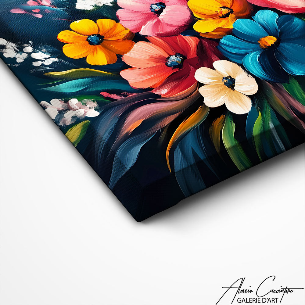 Notre tableau de fleurs célèbre la beauté naturelle avec des motifs classiques ou modernes, offrant une décoration intemporelle et charmante, adaptée à tout intérieur.