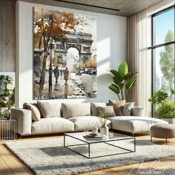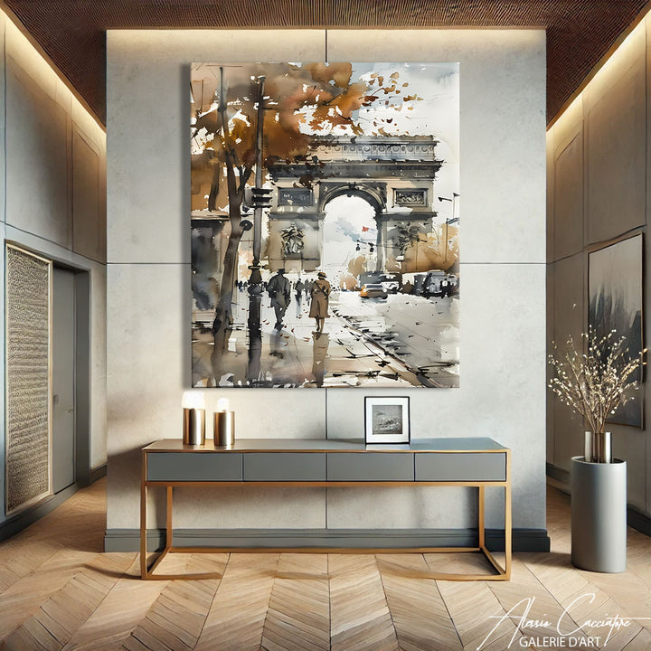 Notre tableau déco Paris revisite l’iconique Arc de Triomphe dans un style abstrait audacieux, mêlant textures modernes et couleurs dynamiques. Les formes déstructurées et les jeux de lumière donnent une nouvelle dimension à ce monument emblématique, créant une œuvre unique et captivante. Idéal pour un intérieur contemporain, notre tableau apporte une touche artistique et sophistiquée à votre décoration, tout en rendant hommage à l’élégance intemporelle de la capitale française.