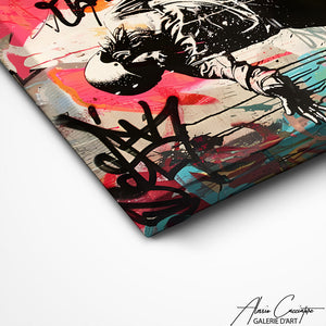 Notre tableau street art représente une skater en plein mouvement, capturée dans un style urbain brut et dynamique. Les couleurs vives, les textures graffiti et l'attitude rebelle apportent une énergie moderne et audacieuse à votre pièce. Parfait pour un salon au style jeune, arty ou industriel. Ce tableau incarne la liberté, la culture urbaine et le goût de l’action.