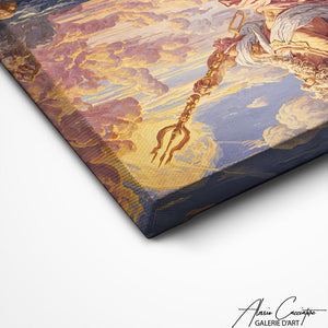 Notre tableau Dieu Grec capture toute la majesté des divinités antiques à travers un portrait saisissant, empreint de puissance et de sagesse. Avec ses détails et ses touches dorées modernes, ce tableau impose une présence noble et intemporelle à votre décoration intérieure.