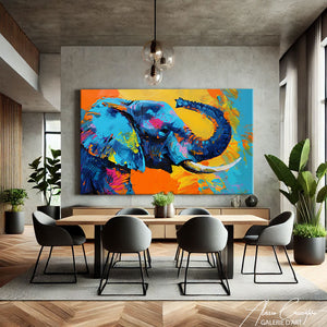 TABLEAU ÉLÉPHANT TROMPE EN L'AIR