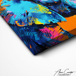 Nos toiles sont imprimées grâce à une encre spéciale resistante aux UV. Cette encre protège les couleurs au fil des années pour conserver le contraste de la peinture.