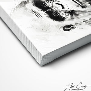 La simplicité élégante de notre tableau gorille noir et blanc offre une interprétation moderne de la force animale. Ce contraste saisissant de nuances monochromes crée une pièce maîtresse raffinée et intemporelle pour tout décor sophistiqué.