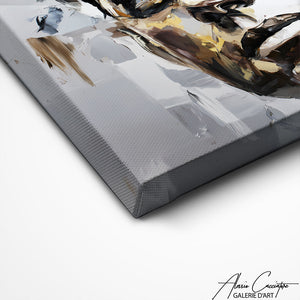 Nos toiles sont imprimées grâce à une encre spéciale resistante aux UV. Cette encre protège les couleurs au fil des années pour conserver le contraste de la peinture.
