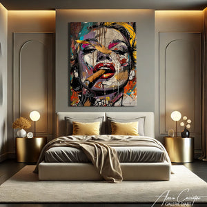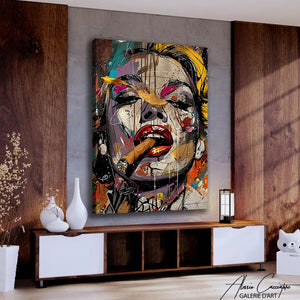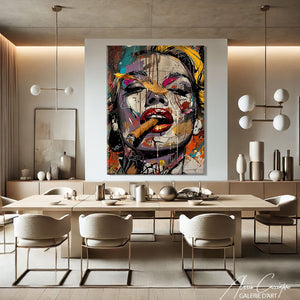 Ce tableau met à l’honneur l’icône intemporelle Marilyn Monroe dans un style pop art street art et moderne. Les couleurs éclatantes et les contrastes graphiques capturent son aura légendaire. Parfait pour une déco glamour et contemporaine. Ce tableau affirme un style chic, rétro et résolument audacieux.