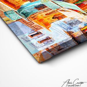Nos toiles sont imprimées grâce à une encre spéciale resistante aux UV. Cette encre protège les couleurs au fil des années pour conserver le contraste de la peinture.