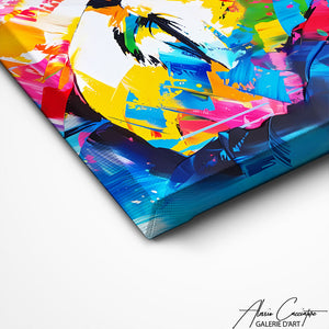 Nos toiles sont imprimées grâce à une encre spéciale resistante aux UV. Cette encre protège les couleurs au fil des années pour conserver le contraste de la peinture.