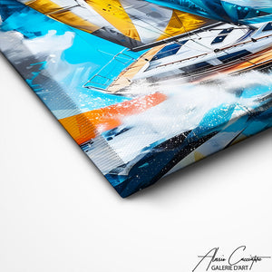 Notre tableau bateau capture l'harmonie parfaite entre la mer et les embarcations qui la sillonnent. C'est une invitation à plonger dans l'azur, à ressentir la brise salée et à rêver de lointains voyages, apportant une bouffée d'air frais à votre décoration.