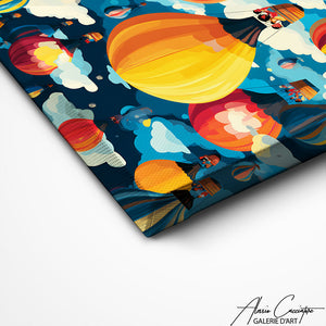 Notre tableau montgolfière enfant enchante la chambre avec douceur et rêverie colorée. Cette illustration poétique crée une atmosphère apaisante et stimulante pour l'imagination. Décoration murale parfaite pour nurseries modernes et espaces enfants inspirants et tendres.
